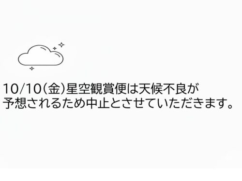 【10/10】星空観賞便中止のお知らせ